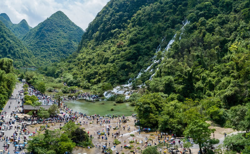 小七孔風(fēng)景區(qū)所在的荔波縣屬于亞熱帶季風(fēng)濕潤(rùn)氣候區(qū)。氣溫分布的總趨勢(shì)是南高北低。地勢(shì)每升高100米,氣溫大致下降0.55℃;河谷地帶比同高度的山地,東西向槽谷比南北向槽谷,南坡比北坡,封閉型谷盆地比同高坡地氣溫高。全縣年平均氣溫18.3℃。全縣常年最熱月為7月,最冷月為1月。7月平均氣溫為27.0℃以下,極端最高氣溫不超過(guò)40.0℃;1月平均氣溫各地均在5.5℃以上,極端最低氣溫在-10.0℃以上。