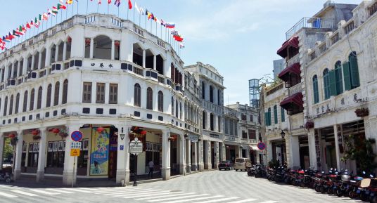 主要分布于?谑袇^(qū)的得勝沙路、文明東路、中山路、博愛路、長堤路等幾條老街區(qū),是?谑幸惶幾罹咛厣慕值谰坝^,其最古老的建筑四牌樓始建于南宋,已有700多年歷史。2009年6月10日,在由國家文化部和國家文物局主辦的首屆“中國歷史文化名街”評選推介活動中,騎樓老街憑借其極富中西特色的建筑風(fēng)格和歷史風(fēng)味的文化底蘊榮獲首批十大“中國歷史文化名街”稱號。