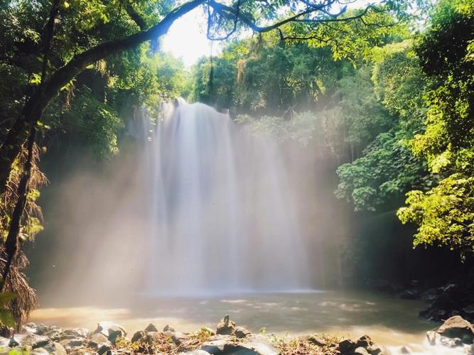 臨高古銀瀑布位于海南臨高縣皇桐鎮(zhèn)居仁村西部附近,距縣城以東20公里。史稱“古銀瀑布”,這一個(gè)大潭,有“三潭九曲”之美稱。瀑布系平川落差而致,落差20米,幅面20米,幅寬400平方米;周圍怪石林立,形狀各異,千姿百態(tài)。后面樹木茂密,宛如碧海,屹立在怪石上,枝繁葉茂,覆蓋如亭。錯(cuò)節(jié)盤根,透出倔強(qiáng)的生命力。處處花香鳥語(yǔ)不斷