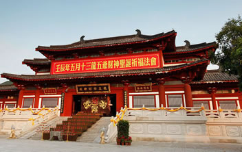 龍五爺財(cái)神殿位于三亞南山龍脈財(cái)穴之地,供奉著南海龍王第五子——圣衍,即“天下第一財(cái)神”——龍五爺。龍五爺財(cái)神殿由三個(gè)部分組成:一是招財(cái)大殿,開示信眾招財(cái)進(jìn)寶;二是地宮財(cái)庫(kù),護(hù)佑信眾守財(cái),護(hù)財(cái);三是。五爺萬(wàn)佛閣,護(hù)佑信眾福祿傳世,富貴傳家。龍五爺財(cái)神招財(cái)大殿,開示信眾如何求財(cái)?shù)姆ㄩT。在龍五爺財(cái)神殿的大殿之上,有八根財(cái)柱,分別代表了龍五爺開示眾生如何正當(dāng)求財(cái)?shù)陌舜蠓ㄩT,只有依五爺開示,樹立了正確的八大財(cái)富觀,才能求財(cái)如意。