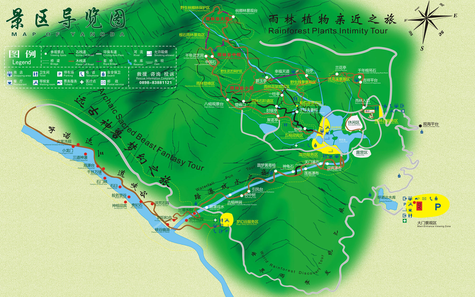 海南呀諾達(dá)雨林文化旅游區(qū)集熱帶雨林、峽谷奇觀、流泉疊瀑、黎峒風(fēng)情、熱帶瓜果、南藥、溫泉多種旅游資源于一身。主要有生肖廣場、雨林谷、夢幻谷、三道谷、濕地等多個(gè)景觀區(qū),有呀諾達(dá)雨林、藥師峽谷、生肖廣場、啪魯?shù)弦巴馔赜?xùn)營、呀呀呀熱帶果鄉(xiāng)、達(dá)達(dá)瑟黎苗博覽以及酒店、度假村等項(xiàng)目,是海南島五大熱帶雨林的濃縮,是具觀賞價(jià)值的熱帶雨林資源博覽館。