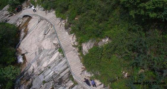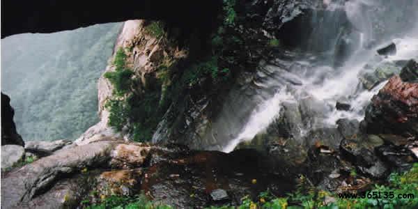天生橋瀑布群,在阜平縣城西南30多公里處百草坨東側(cè),分布著九個(gè)大瀑布,一座天然形成的橋梁,被專家鑒定為中國北方最大的瀑布群和由變質(zhì)巖形成的中國最大的天生橋。瀑布群集中在與百草坨相連的一條溝谷中,最高的瑤臺(tái)瀑布落差112.5米。天生橋是由瀑流沿山谷裂隙沖蝕、崩塌形成的,長27米,寬13米,高13米,與流量最大、落差最高的瑤臺(tái)山銀河瀑布組合,形成了一個(gè)天然地質(zhì)奇觀。盛水期飛流直下,如天馬奔騰,驚天動(dòng)地;枯水期清流潺潺,聲韻清脆,宛如輕音樂協(xié)奏曲。冬季瀑布水凝,生成千千萬萬、大大小小、姿態(tài)各異的冰柱,猶如鬼斧神工造化的玉雕。