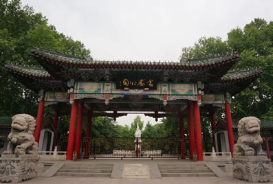 步入大門,迎面而立的是一組高約11米的工農(nóng)兵塑像。該塑像成為邯鄲市繼晉冀魯豫烈士陵園內(nèi)“八路軍”、“民兵”兩組大型人物群雕后,又一組大型雕塑。工農(nóng)兵塑像的后面是筆直的公園大道,中間為如茵的草叢和剪裁整齊的灌木,兩側(cè)為蒼勁挺拔的雪松,一直向西延伸到叢臺下的環(huán)城湖。