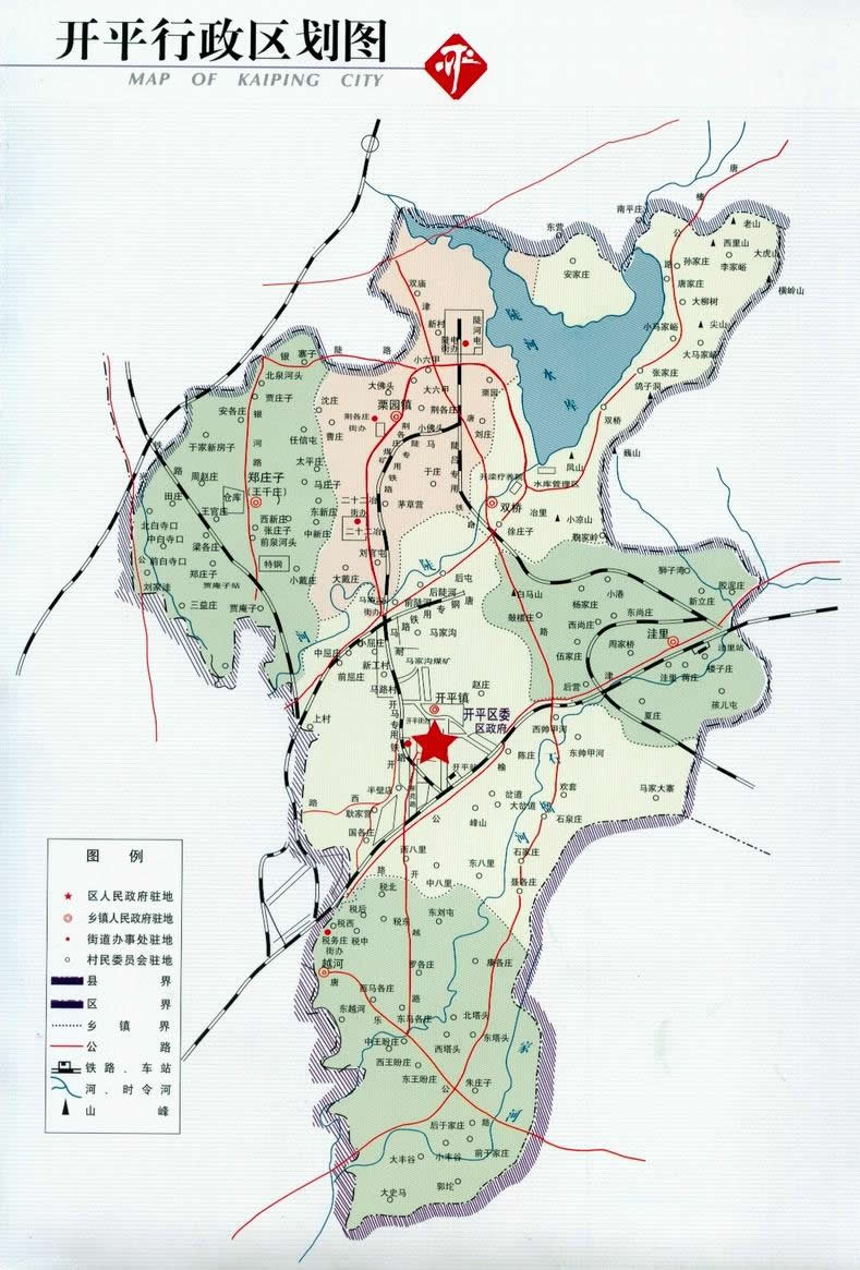 開平鎮(zhèn) 鎮(zhèn)政府駐開平西大街35號。面積52.79平方千米,人口5.80萬。轄34個村委會:開平一街、開平二街、開平三街、開平四街、開平五街、開平六街、開平七街、東帥甲河、西帥甲河、馬家大寨、馬家溝、小屈莊、前屈莊、中屈莊、半壁店、大岔道、石泉莊、前陡河、后陡河、耿家營、中八里、東八里、西八里、國各莊、聶各莊、石家莊、豐山、趙莊、上村、后屯、馬路、歡套、陳莊、岔道。
