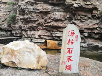 夫亦陰陽(yáng)五行觀之北方為陰為水為母,邢臺(tái)天河山有此母陰之穴,坐北向南,高30米,比之南方為陽(yáng)為火為男,韶關(guān)丹霞山有丹陽(yáng)之石,座南朝北,高28米。此陰陽(yáng)巨物南北呼應(yīng),匹配成雙,真乃自然造化,鬼斧神工,大江南北之旅游勝景,偶然而又必然也!