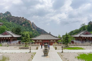 山海寺景區(qū)是祖山的中心景區(qū),下山可觀瀑布,上山可登主峰,西去可游“花果山”,東行可觀“畫廊谷”。這里景點比較集中,有仙女云床、秀才觀榜、山字峰、醉臥劉伶、龜兔賽跑、窟窿山、神龜深海、蓮花出水等奇石美景!跋膳拼病庇蓛蓚連體冰臼組成,似美女睡臥之跡,勘稱世界奇觀;“秀才觀榜”恰似秀才在榜前尋名;“飛天谷”長約十里,兩岸奇峰美石依次排開,流于谷中如觀畫廊。