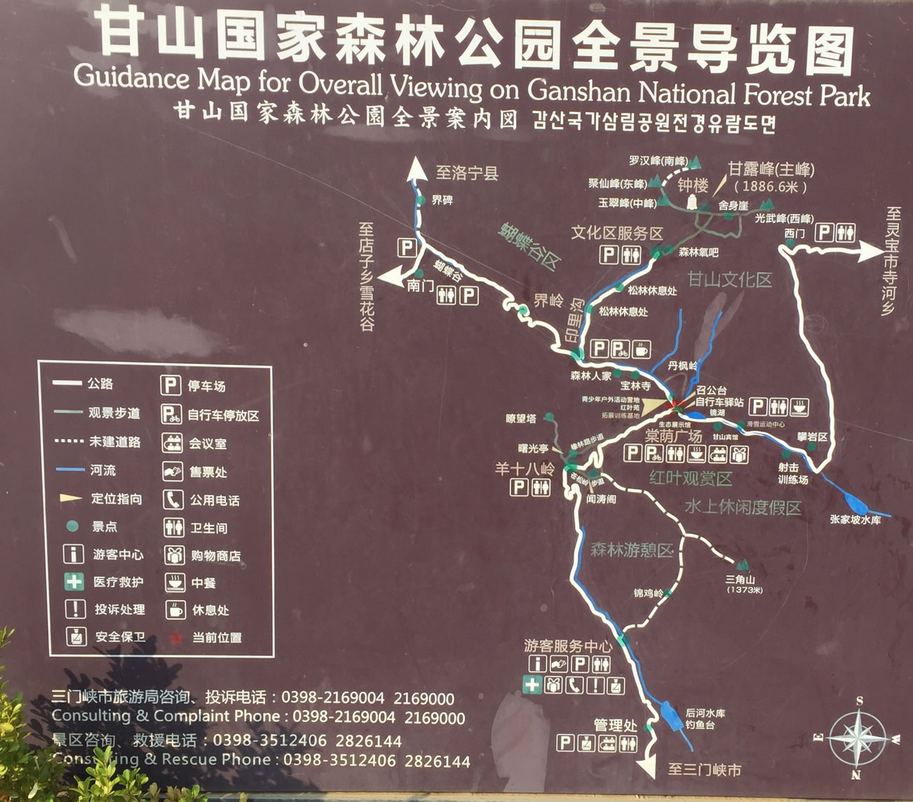 河南甘山國(guó)家森林公園,位于三門峽市區(qū)南20公里,地處豫、秦、晉三省交界處。始建于1999年,總規(guī)劃面積7860公頃,已開發(fā)了水上游樂(lè)區(qū)、森林游憩區(qū)、紅葉觀賞區(qū)、蝴蝶谷景區(qū)、甘山文化區(qū)五個(gè)景區(qū)。