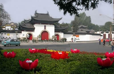 像,重一噸多,雕工細膩,技藝精湛,是1935年太虛法師訪問緬甸時,仰光的佛教徒贈送給我國的。象這樣精美的玉雕佛像,國內(nèi)僅有三尊,另兩尊分別在北京和上海。再如南北朝時埋藏的石刻觀音像,姿態(tài)輕盈,髻結敞胸,身佩纓絡,手攜凈瓶,距今已有1400多年的歷史,具有較高的歷史藝術價值。還有兩尊紅木雕刻的達摩像,是清康熙初年的木雕精品,兩尊像,一坐一立,富有個性,生動表現(xiàn)出達摩面壁九年,閉目冥思、超然物外的形態(tài)。