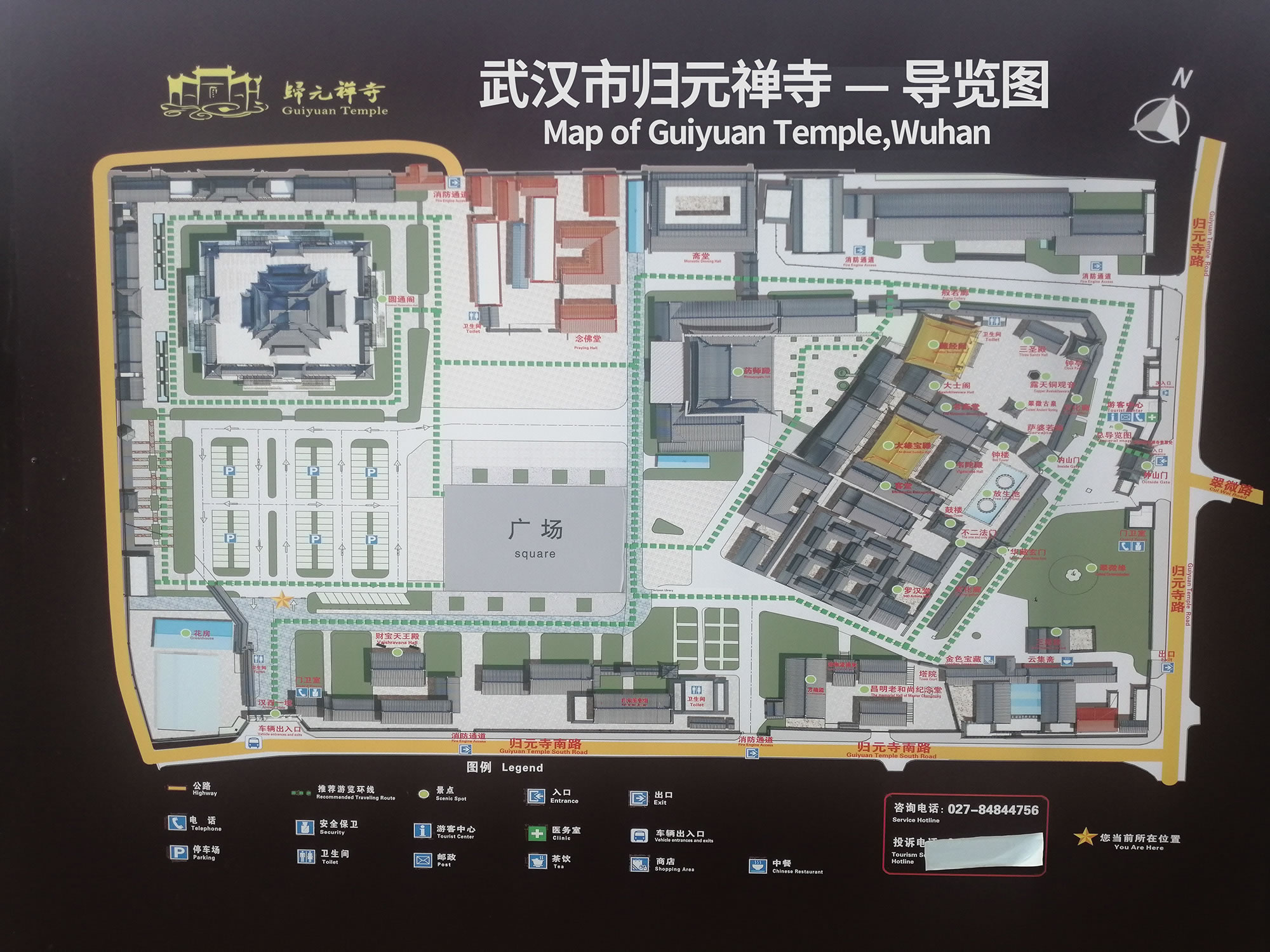 歸元禪寺由北院、中院和南院三個各具特色的庭院組成,分別擁有藏經(jīng) 閣、大雄寶殿和羅漢堂等三組主體建筑群。