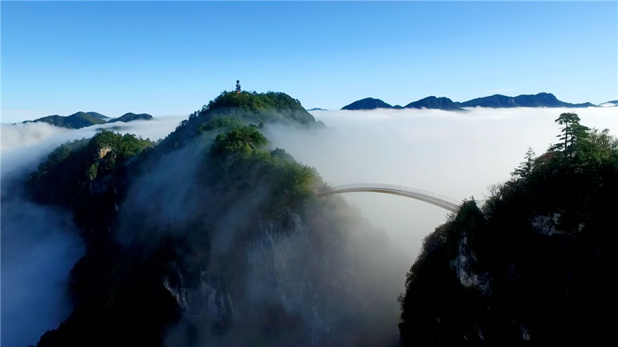 (2)流云佛光型:獨特的地形和濕潤的氣候造就了綺麗壯觀的云霧霞光,是神農架特有的景致。更神奇的是,云海之上偶爾懸起一輪五彩光環(huán),環(huán)中似有人影晃動,那就是舉世罕見的“佛光”,中央新聞電影制片廠記者曾在天門埡、燕子埡一帶攝下這一自然奇景,使神農架成為與峨眉山齊名的又一塊仙山佛地。