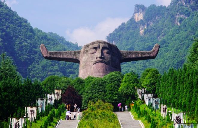 2002年通過國家質量ISO9001和ISO 14000體系認證,被評為國家4A級景區(qū),建成于1997年,是神農架一個自然和人文相結合的景區(qū)。景區(qū)有特色地分為四個部分:古老植物園、千年杉王、神農祭壇、購物長廊。祭壇內神農塑像高大雄偉,莊嚴肅穆,雙目微閉,似乎在洞察世間萬物。它以大地為身軀,頭像高21米,象征中華民族在21世紀蒸蒸日上,寬35米,與它的高加起來共56米,象征著56個民族的大團結。祭壇外圍的五色石代表著五行,即金、木、水、火、土,內方外圓,即有天圓地方之意。祭壇的兩側用八組壁畫記錄著遠古神農氏的功德,即降牛以耕、焦尾五弦、積麻衣葛、陶石木具、原始農耕、日中為市、穿井灌溉。八組壁畫以藝術的手法敘述了神農氏的豐功偉業(yè),表達了子孫們的無限追戀。