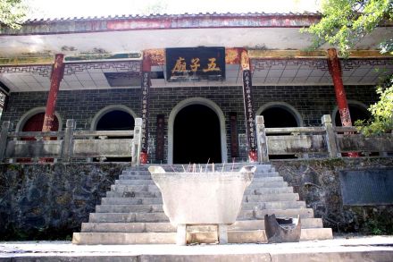 五子廟是為紀(jì)念“炎陵五子”建造的,炎陵民間流傳著“炎陵出五子”的故事。五子即神農(nóng)天子、鐘馗才子、孟姜女子、鐵頭太子、羅浮孝子。五子廟是1995年根據(jù)五子的傳說形象而設(shè)計(jì)的仿古建筑,單層。里面擺放著分別代表智慧、勇敢、剛正、忠效、善良的圣人或奇人的塑像。廟頂青磚紅瓦,雕梁畫棟,與周圍古木相得益彰,一種古樸神秘的懷古氛圍,前來燒香拜佛的香客不斷,初一、十五猶為更盛。