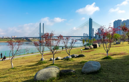 會龍山公園北接資江,南達(dá)花鄉(xiāng)路,西靠志溪河,東接資江一橋繁華路段,總面積152.2公頃。公園規(guī)劃為三個景區(qū),其中心區(qū)為佛教人文景區(qū),北為濱江景區(qū),南為自然山林景區(qū)。