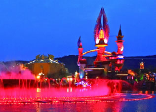 遮掩不住的綠意、隨風(fēng)起舞的樹(shù)影、奇思妙想的雕塑。每處景致都在極力烘托各區(qū)域的主題特色。漫步在嬉戲谷,收獲的不僅是自然的靈感、生活的情趣,更有讓人禁不住會(huì)心微笑的細(xì)節(jié)和不經(jīng)意間心靈的震撼。最美不勝收的樂(lè)園中心的“精靈湖”,湖中挺立著一座精致典雅、風(fēng)格獨(dú)特的“神秘之島”,湖島相連,脈脈依依,給人以無(wú)盡想象,續(xù)寫(xiě)著不朽的浪漫傳奇,夜晚。彩色噴泉與夜色相交,體現(xiàn)出與自然景色不一樣的美-------科技美。