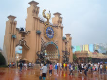 “迷獸天途”:這座龐大的平頂建筑也有石砌的不規(guī)則外墻,其內(nèi)部設(shè)計(jì)則緊扣樂(lè)園劍文化主題,充滿游戲魔幻色彩。集現(xiàn)場(chǎng)實(shí)景、立體電影、現(xiàn)場(chǎng)特技、動(dòng)感平臺(tái)等先進(jìn)技術(shù)于一體,綜合了巨幕、環(huán)幕4D電影、多自由度動(dòng)感游覽車(chē)、現(xiàn)場(chǎng)特技等多項(xiàng)高科技游樂(lè)技術(shù)。