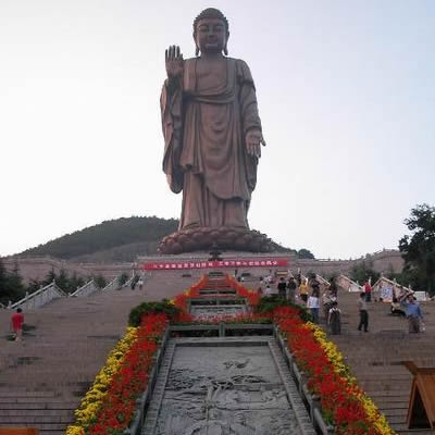 靈山景區(qū)門樓為城樓式建筑,游客由此入園,即至佛手廣場。佛手廣場建有天下第一佛掌,為大佛右手復制件,印相為“施無畏印”,表示除卻眾生痛苦,撫慰眾生心靈。