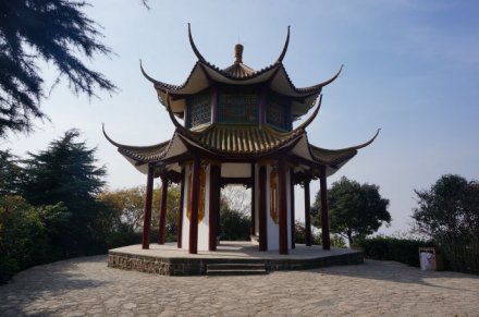 始皇臨江處位于中峰半腰北側(cè)。據(jù)漢司馬遷《史記》載,公元前210年,秦始皇東巡,北返時登臨攝山(棲霞山),有彰顯四海一統(tǒng)、雄視千古之意。該景點于2006年春修建,為一仿古建筑,包括重檐亭、廊、軒以及觀景平臺,是閱江攬勝之絕佳之地。