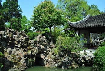 獅子林雖綴山不高,但洞壑盤旋,嵌空奇絕;雖鑿池不深,但回環(huán)曲折,層次深奧,飛瀑流泉隱沒于花木扶疏之中。獅子林的古建筑大都保留了元代風(fēng)格,為元代園林代表作。園以疊石取勝,洞壑宛轉(zhuǎn),怪石林立,水池縈繞。依山傍水有指柏軒、真趣亭、問梅閣、石舫、臥云室諸構(gòu)。主廳燕譽(yù)堂是典型的鴛鴦廳形式;指柏軒,南面面對假山,下面靠近小池,古柏蒼勁;見山樓上可以看到群峰;菏花廳雕鏤精工;五松園庭院幽雅;湖心亭、暗香疏影樓、扇亭等均各有特色。園內(nèi)四周長廊縈繞,花墻漏窗變化繁復(fù),名家書法碑帖條石珍品700余方。
