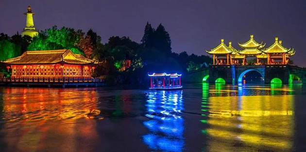 據(jù)悉,瘦西湖南門(mén)、西門(mén)、東門(mén)、1757美食街坊門(mén)為夜游出入口,游覽范圍北至楊莊橋,包含區(qū)域內(nèi)全部露天游覽區(qū)域。白天購(gòu)買(mǎi)的門(mén)票(不出園)可延時(shí)使用到當(dāng)天晚上9點(diǎn)。