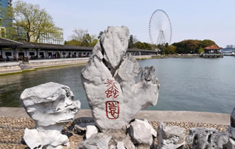 盤云、歸云、留云”之名。高12米的歸云峰為假山群峰之巔。游人聚立其上,極似寺廟中的大壁塑——山海佛像圖。假山之南,有池水縈繞,其中停泊著一艘建于1930年的“蓮舫”。碧波與假山間有古軒。向南有“洗耳泉”,泉井徑米許,狀如耳孔,周圍湖石疊成耳廊狀。泉西,有數(shù)十株丹桂,題稱“桂林天香”。 1995年國家郵電部發(fā)行的《太湖·蠡湖煙綠》和1996年朝鮮發(fā)行的《太湖》郵票,都將蠡園作為其主景。郵票被譽稱“國家名片”,上述兩枚郵票的發(fā)行,更使蠡園遐邇聞名。