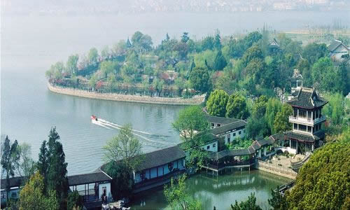 蠡園,離無錫市區(qū)10公里,坐落在蠡湖北岸的青祁村,面積8.2公頃,水面占3.5公頃。園以湖名,湖因園勝,曲岸枕水,秀麗明媚。錯落在綠樹花影中的亭廊橋榭,散發(fā)出水鄉(xiāng)園林的特有風姿。