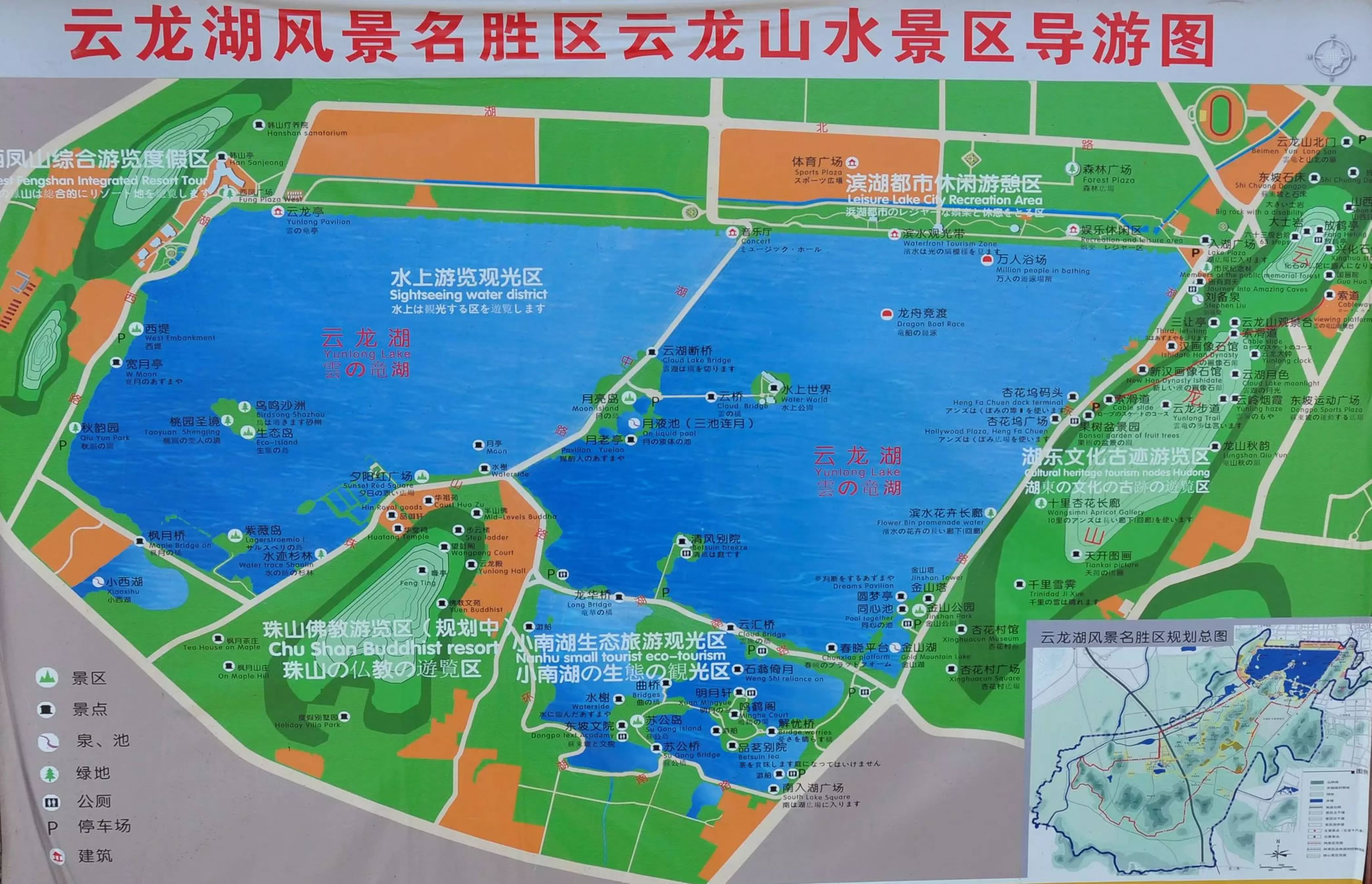 小南湖:是云龍湖的有機組成部分,它位于云龍湖南岸,其水全部來自云龍湖,兩者之水從橋下相通,但兩湖之間又被一條道路和綠化帶隔開,所以又可單稱小南湖。小南湖原是云龍湖南部的一大片洼地。
