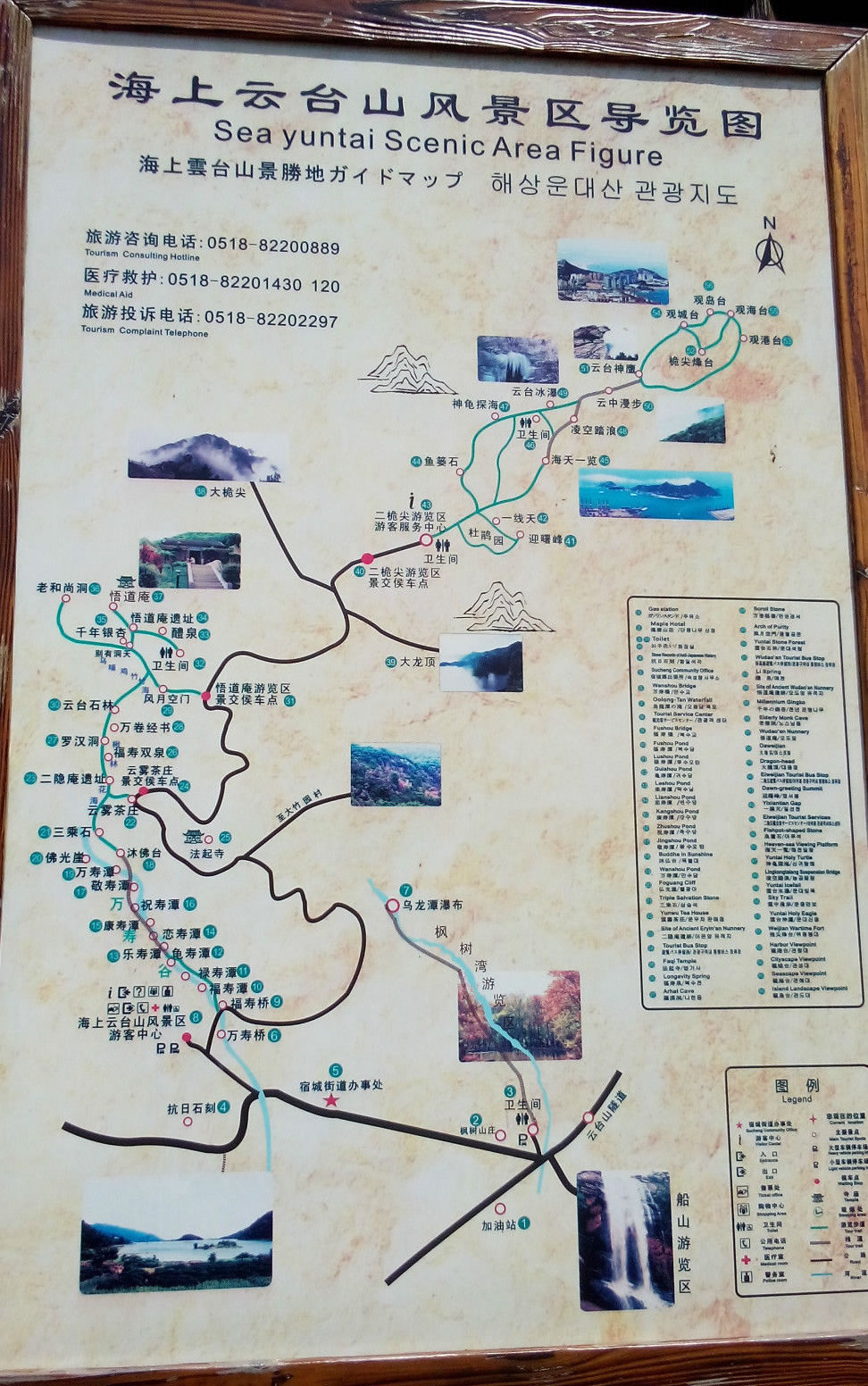云臺(tái)山古稱郁州山,唐宋時(shí)稱蒼梧山。唐李白詩:“明月不歸沉碧海,白云愁色滿蒼梧。”宋蘇軾詩:“郁郁蒼梧海上山,蓬萊方丈有無間”,寫的都是云臺(tái)山。她原來只是黃海中的一列島嶼,18世紀(jì)方與大陸相連。遂形成峻峰深澗,奇巖坦坡,山光水色,獨(dú)具神姿 ,被譽(yù)為:“海內(nèi)四大名靈”之一。明嘉靖年間道教興盛 ,道士云集達(dá)兩萬之眾,山又被譽(yù)為“七十一福地。
