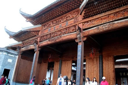 蕭江宗祠 又名永思祠,座落在婺源縣江灣鎮(zhèn)占坑村,距婺源縣城32公里,江灣約2公里。始建于明朝萬(wàn)歷六年(1587年),后毀于太平天國(guó)戰(zhàn)火。1924年(民國(guó)十三年)重建,文化大革命期間又被拆毀。蕭江宗祠曾被譽(yù)為江南七十座著名宗祠中“最好的一座宗祠”為婺源古代四大古建之首。2003年9月,第三次重建。該祠盡顯王室氣派,占地面積達(dá)2400平方米,分前院、前堂、中堂、后堂四進(jìn)。前院為寬敞花園,設(shè)有青石護(hù)欄半月形蓮花池,內(nèi)養(yǎng)紅鯉魚、草魚、軍魚等多種魚類;前堂為五鳳樓、九脊頂、午朝門、月樓,梁材檐椽巧飾雕琢、畫面生動(dòng)、形態(tài)逼真;中堂粗梁大柱,鼓式石礎(chǔ),石階、石欄、月臺(tái)各具特色,匾額楹聯(lián)措詞秀麗、授意深長(zhǎng);后堂高于前堂,有樓閣安放靈牌。