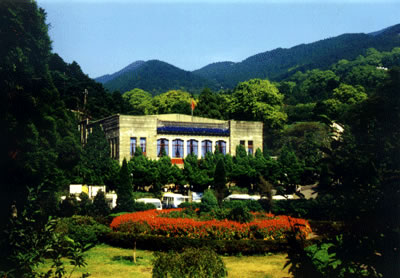 廬山會議舊址位于牯嶺東谷擲筆峰麓。原是蔣介石在廬山創(chuàng)辦軍官訓練團的三大建筑之一,于1937年落成,名廬山大禮堂。解放后改名“人民劇院”。1959年中國共產黨八屆八中全會,1961年中央工作會議和1970年九屆二中全會均在此召開。毛澤東同志主持了這三次重要會議,F(xiàn)在,這里已辟為廬山會議紀念館。里面保存著當年許多珍貴的實物、照片、材料和根據紀錄片制作的錄相片,供游人觀看。 右側不遠處的“廬山大廈”為外觀4層、內有6層的鋼筋水泥建筑,原為國民黨軍官訓練團的中下級軍官住所,正面額上原有蔣介石題寫的“廬山傳習學舍”四個大字。位于會址和大廈中間的一座宮殿式建筑即為1935年落成的廬山圖書館。