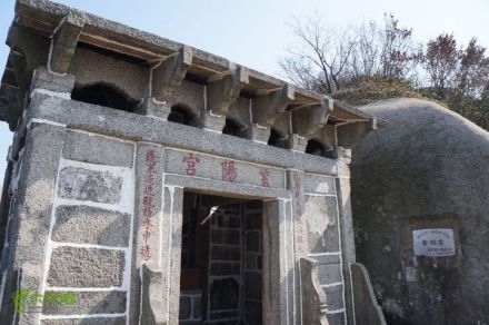 紫陽宮為當(dāng)?shù)厝思o(jì)念鄧禹修建的道觀。全部采用花崗巖砌成,石屋巍峨,建筑華麗。門前橫梁正中刻著“紫陽宮”三字,宮內(nèi)供奉鄧禹石像。兩側(cè)石柱之上刻有對聯(lián)一副:“一竅道通沖北極,萬年仙境鎮(zhèn)西山”。石室下方有鄧仙洞、鄧真君墓、起居石室。