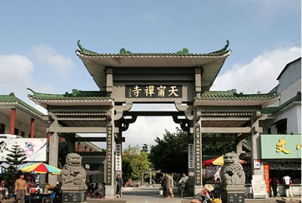 天寧古寺有過極盛的年華,隨著滄桑的變遷,屢經(jīng)摧殘,古寺蕩然無存。至1985年9月僅存一座高不到 二米、面積不足18平方米,風(fēng)雨飄搖的觀音間,神龕上只有一張圖像供游客參拜,當(dāng)年61歲的萬仁英同志,誠虔地來此剃發(fā)為尼,授法號叫釋順因,并將她多年的積蓄六千元贊助寺內(nèi)作經(jīng)費。在古寺住持垂范下,用了七年時間,建成了一座氣派軒昂,規(guī)模宏偉的綜合性寺廟。建筑面積達(dá)五千平方米,屹立在灣里區(qū)南端,接待八方香客和游人。