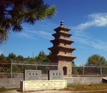 靈光塔,位于吉林省白山市長白朝鮮族自治縣長白鎮(zhèn)西北。靈光塔是一座典型的磚砌密檐樓閣式方形古塔,是渤海國仿唐建筑,始建于唐渤海年間(698年~926年),已有1300多年的歷史。靈光塔的原名早已失傳,今名“靈光塔”由清末長白府第一任知府張風臺命名。