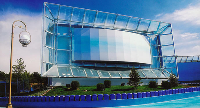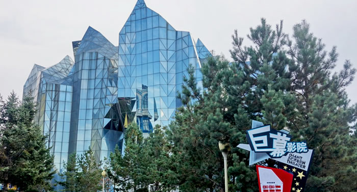 巨幕影院,位于長(zhǎng)影世紀(jì)城西南部,建筑外形酷似冰山,內(nèi)部座位400個(gè),設(shè)有高18米、寬25米熒幕,稱為巨幕影院,6.1聲道的立體效果,和立體特效影像相結(jié)合。
