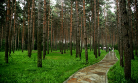 森林浴場種植了4萬平萬米的樟子松林,樟子松特點是樹干底部為灰黑色,上部為紅褐色,外形比較美觀,與長白山的美人松很相像,屬于常綠喬木,最高可達(dá)30 米,耐寒性和適應(yīng)性都很強(qiáng)。這樣完美整齊的樟子松林,在國內(nèi)都屬罕見。橫穿森林浴場的小路是由冰片石鋪成的,取材遼寧本溪,是一種帶有蕨類植物的化石。