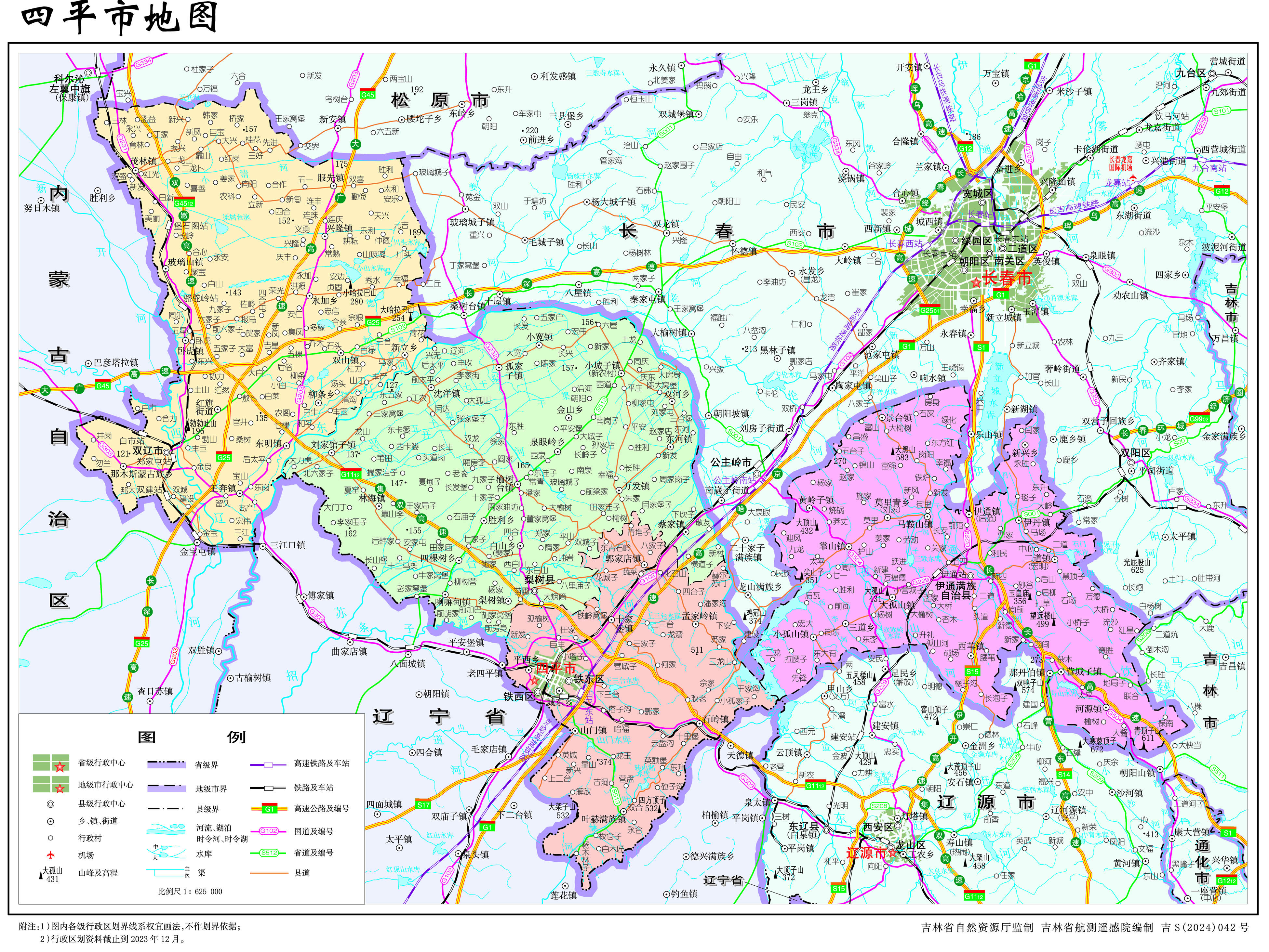 四平市轄2個(gè)市轄區(qū),2個(gè)縣,代管1個(gè)縣級(jí)市: