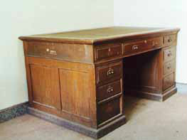 北野政次使用過的辦公桌、椅子、書架:北野政次曾用名北野政藏,日本人。日本東京帝國大學(xué)畢業(yè),獲醫(yī)學(xué)博士。這一套桌、椅及書架是當(dāng)時北野政次在“滿洲醫(yī)科大學(xué)”時使用的“辦公用品”,是由中國醫(yī)科大學(xué)于1997年捐贈給該館的。