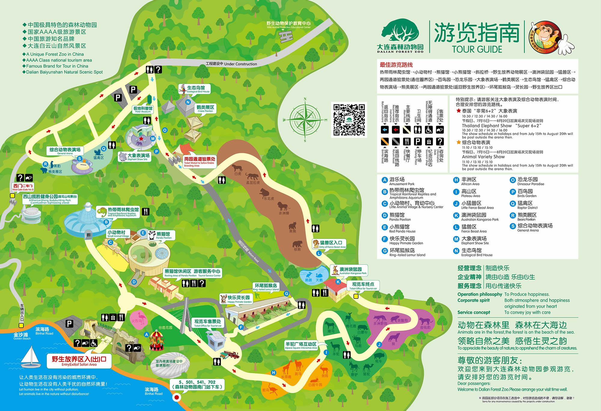 大連森林動物園與國內(nèi)同類動物園比較,有以下幾個特點:一是環(huán)境優(yōu)美;二是交通便利;三是設施現(xiàn)代;四是追求自然。園區(qū)共展出動物60余種,4000余頭(只)。