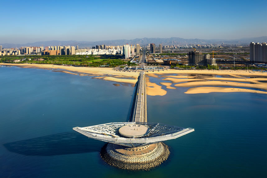 仙人島位于蓋州市九垅地鎮(zhèn)西海邊。仙人島又為陸連島,有大片沙堆積體與陸地相連,呈向西突出于海的岬角。岬角區(qū)南北寬約1公里,東西長約2公里,臨海為陡坡,平均高差10米。島的后方陸域平坦寬闊,為耕地和居民點。自半島北部岬角東北端往熊岳河口方向3公里岸段陸域平坦開闊,縱深大,加大水深條件良好,是較好的港址岸段。