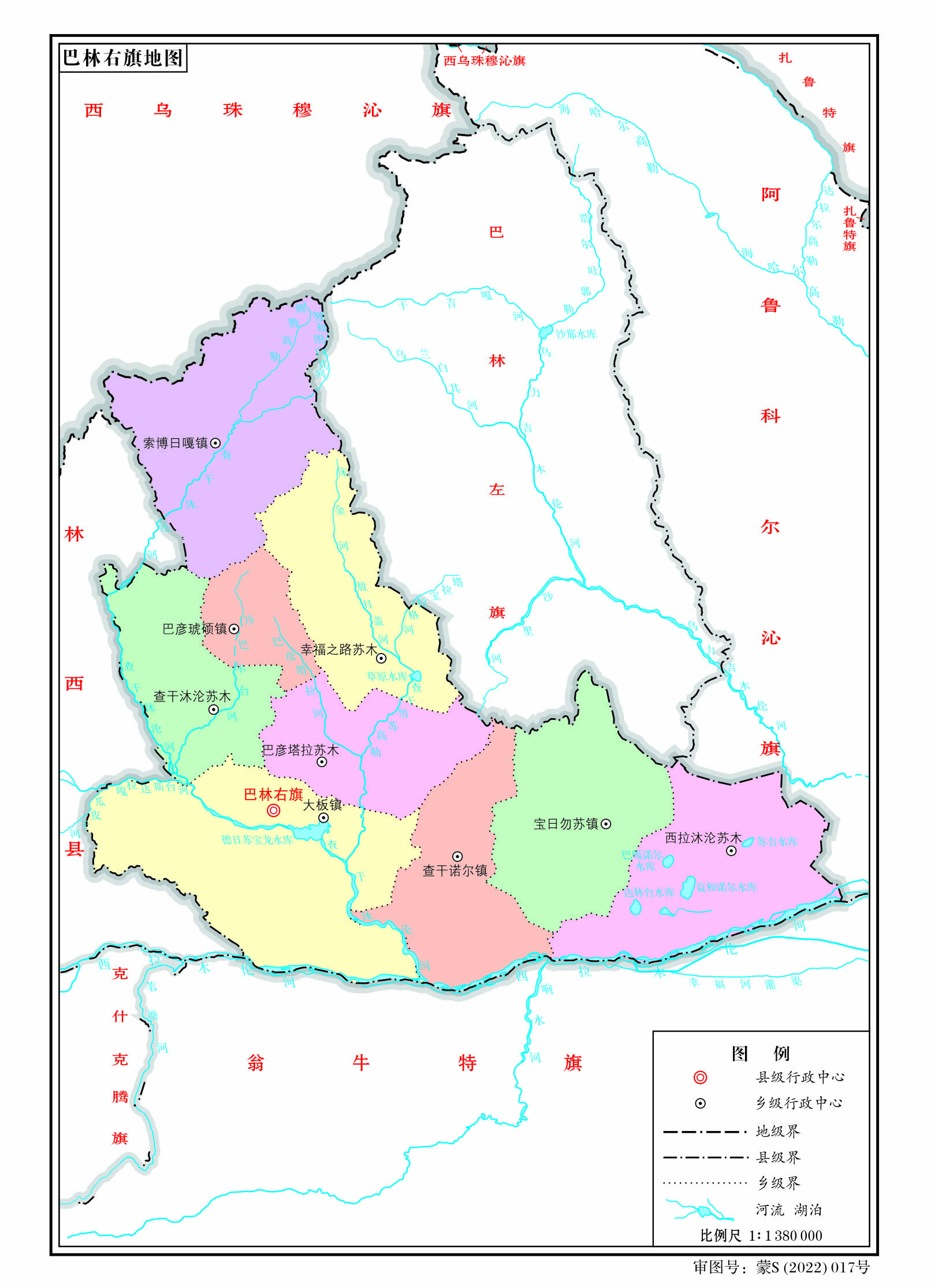 巴林右旗轄4個(gè)鎮(zhèn)、2個(gè)鄉(xiāng)、10個(gè)蘇木: