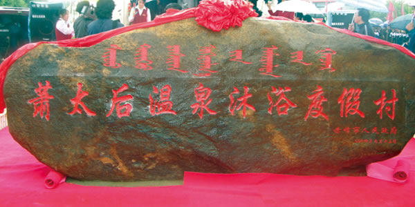 蕭 寧城熱水蕭太后溫泉度假村位于赤峰市寧城縣熱水鎮(zhèn),分布面積0.5平方千米,中心孔口水溫高達96℃,有“中華第一泉”之譽。泉水中富含多種微量元素,對布氏桿菌病、消化道疾病、糖尿病等三十多種疾病均有不同程度的療效。1681年,清康熙帝視察塞外,曾在此駐蹕沐浴,現(xiàn)在其遺址上建起一座“圣泉亭”,為度假村一景。度假村山清水秀,環(huán)境優(yōu)美,建有二十多家不同規(guī)模檔次的療養(yǎng)院和賓館。熱水鎮(zhèn)被國家建設部列為全國500家城鎮(zhèn)建設重點鎮(zhèn),是集療養(yǎng)、旅游、度假為一體的花園式度假區(qū)。 |
