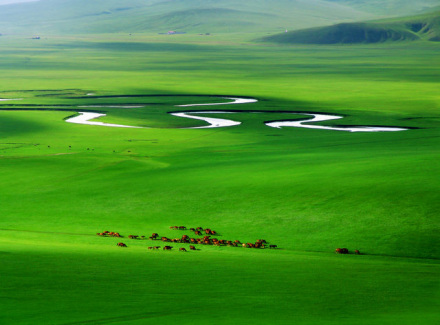 呼倫貝爾市有天然草場8萬平方公里,天然林地12萬平方公里, 呼倫貝爾地處生態(tài)屏障地帶,擁有3000多條河流(其中著名的額爾古納河、克魯倫河、雅魯河等),500多個湖泊(其中著名的呼倫湖、貝爾湖),3000多種植物(如樟子松),400多種野生動物(如狍子、飛龍、黑熊等)。大興安嶺由北向南縱貫其中,成為天然的南北界線。世界聞名的呼倫貝爾大草原廣袤無垠,有“綠色凈土”“北國碧玉”之美譽。