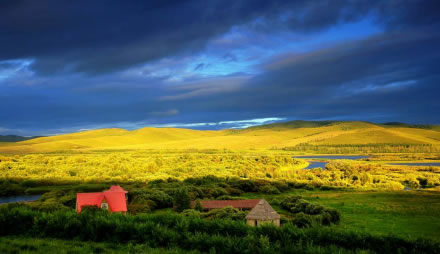 春季,五月的興安嶺上杜鵑花爭奇斗艷,尚未消融的皚皚白雪映著火紅的杜鵑花,是難得一見的人間圣景;夏季的呼倫貝爾氣候宜人,平均氣溫在16℃——21℃之間,是避暑的最佳去處,那醉人的綠色招引著你,站在草原上,看藍天上云卷云舒,心胸就會像草原一樣廣闊。鄂倫春族篝火節(jié)、草原那達慕、鄂溫克族瑟賓節(jié)、祭敖包等民族節(jié)日異彩紛呈。秋季奪人耳目的是那林海的秋色,聽林中松濤陣陣,賞亭亭玉立的白樺,到四方山、達爾濱羅看日出日落,大自然的美景令人留連忘返;走近冬天的呼倫貝爾,一個冰雕玉砌的世界,冰雪節(jié)的圣會,讓您充分領略青松傲雪、暢游林海雪原的豪氣和由冰峰、雪嶺、冰雕構(gòu)成的一派雪韻風情。