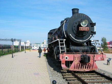 建成于2004年6月。陳列在這里的是一臺1940年日本制造的“亞西亞”型蒸汽機(jī)車,機(jī)車下面的鐵軌是1925年蘇聯(lián)制造的43鐵軌,這臺機(jī)車在中華大地上奔馳了半個多世紀(jì),演繹了生命里程的“三部曲”,留下了許許多多鮮為人知的故事。建國初毛主席就是乘座這臺機(jī)車牽引的火車出訪蘇聯(lián)的。機(jī)車號是 “1861”,“18”代表的是滿洲里到俄羅斯后貝加爾斯克的距離,即18里。“61”是代表毛澤東在滿洲里期間,曾對駕駛這輛火車頭的司機(jī)長說過六句話:一定要與蘇聯(lián)同志搞好友鄰關(guān)系,一定要注重少數(shù)民族地區(qū)的相互團(tuán)結(jié),一定要保障軍用列車的安全,一定要多學(xué)文化,一定要克服天氣寒冷帶來的困難,一定要注意身體。毛主席回國后,向全國人民發(fā)出了建設(shè)社會主義新中國的偉大號召。從1950年到1965年,這臺機(jī)車歡快地馳騁在祖國建設(shè)的鋼鐵運輸線上,立下了不可磨滅的功勛。因此,滿洲里人民又命名它為“滿洲里號”。
