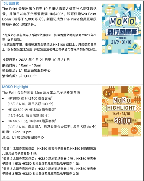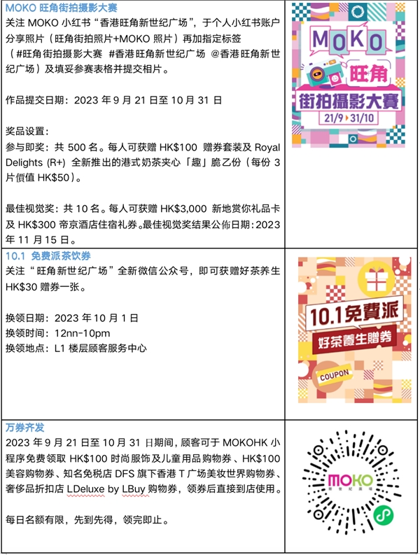 旺角 MOKO 新世紀(jì)廣場中秋國慶推廣活動(dòng)的相關(guān)詳情