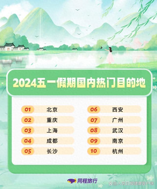 國內游方面,人民日報健康客戶端記者結合攜程旅行、途牛等多個旅行平臺公布的熱門目的地發(fā)現(xiàn),截至4月12日,北京、重慶、上海、成都等地的預訂熱度排名靠前。