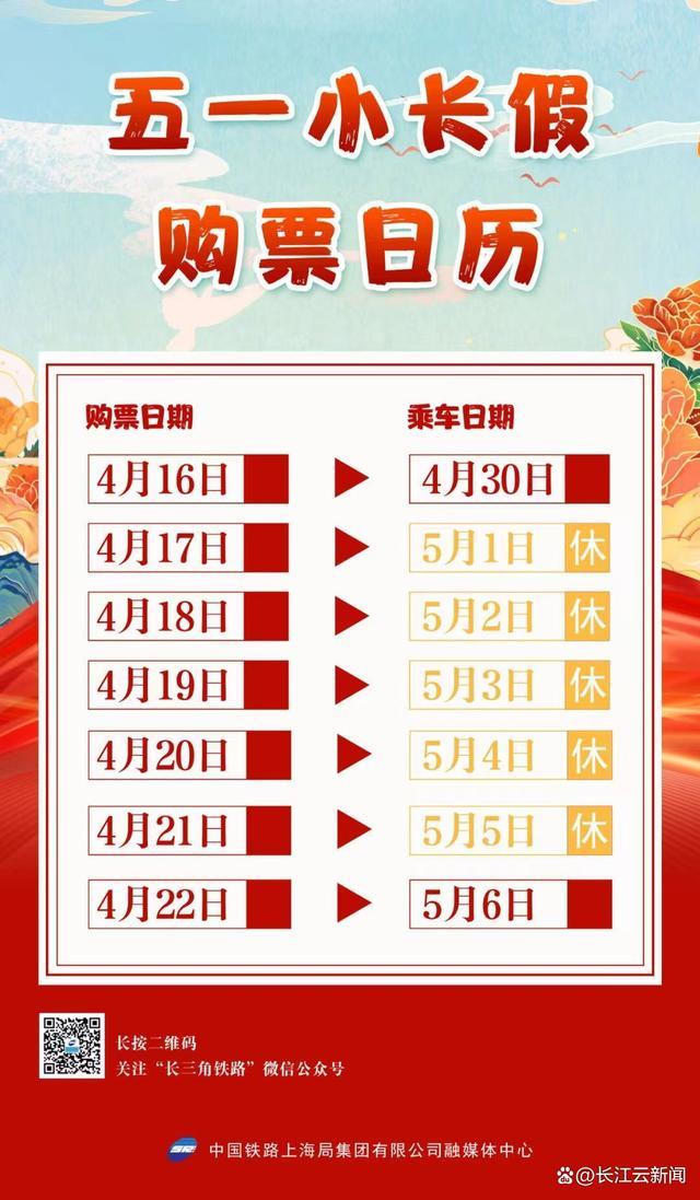 4月16日,五一小長假前一日(4月30日)火車票正式發(fā)售。2024年五一小長假自5月1日至5月5日止,共5天。根據(jù)目前鐵路客票提前15天預售的規(guī)則類推,4月16日開售4月30日火車票;4月17日開售5月1日假期首日火車票;4月21日開售5月5日假期最后一天火車票。