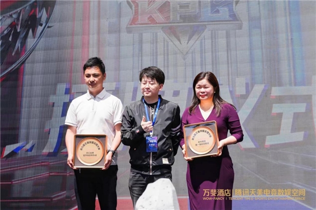 騰訊互娛天美L1工作室王者榮耀全國(guó)大賽負(fù)責(zé)人唐然上臺(tái),授予了萬斐酒店騰訊天美電競(jìng)數(shù)娛空間第九屆王者榮耀全國(guó)大賽——浙江省賽官方指定舉辦方,以及杭州賽區(qū)唯一指定總賽點(diǎn)的榮譽(yù)。由西湖文旅旅游發(fā)展有限公司副總經(jīng)理任亮,和上海歐愉科技總經(jīng)理史央清上臺(tái)接受授牌。