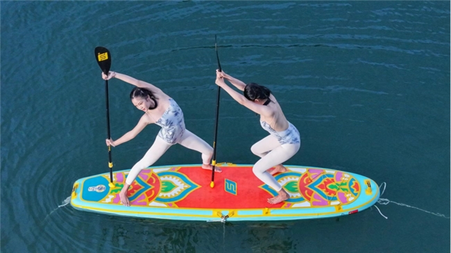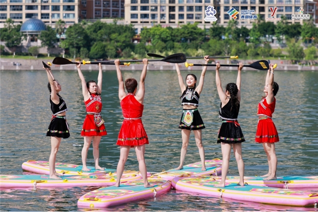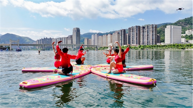 青田地處浙江省東南部,甌江中下游,山水資源豐富,水域總面積超100平方公里,水資源常規(guī)指標(biāo)遠遠優(yōu)于全國、全省平均水平,環(huán)湖綠帶鑲嵌著豐富的歷史人文景點,湖岸城市風(fēng)光與大自然風(fēng)光融為一體,槳板與瑜伽擦出水上火花。