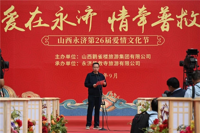 9月 21 日,普救寺迎來了第 26 屆愛情文化節(jié)的盛大開幕式。開場(chǎng)節(jié)目《蒲州花傘》瞬間將人們帶入了濃郁的地域風(fēng)情之中。隨后,主持人隆重介紹到場(chǎng)領(lǐng)導(dǎo)嘉賓。永濟(jì)市政府黨組成員崔子龍發(fā)表了誠摯而熱情的致辭,表達(dá)了對(duì)愛情文化節(jié)的美好祝愿和對(duì)永濟(jì)文化旅游事業(yè)的殷切期望。市委宣傳部部長(zhǎng)李朝霞宣布開幕,正式拉開了本次愛情文化節(jié)的精彩帷幕。