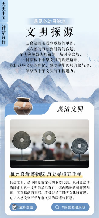 文化愛好者往往更喜歡去有歷史意義的地方,比如各處博物館、歷史古跡。在國慶頻道“遇見心動(dòng)目的地”系列專題,有“文明探源”板塊。從良渚的精美玉器到殷墟的古老甲骨,從六朝的石刻藝術(shù)到明清的宮廷風(fēng)貌,縱享深入探索中華文明的悠久歷史與燦爛文化的魅力。
